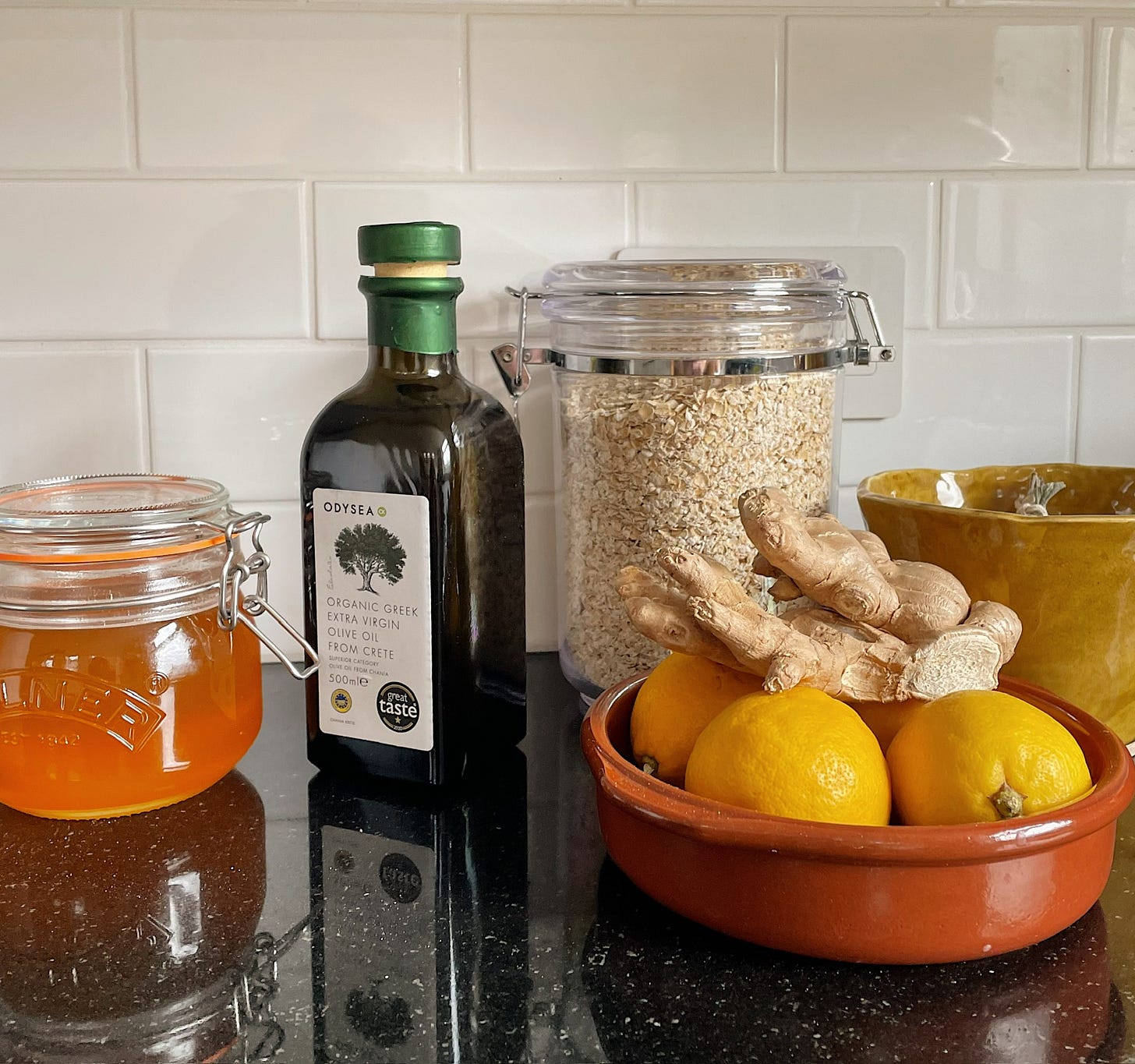 A photo of my kitchen counter this morning, no placement or faff just a simple record of what I’m reaching for atm: an oaty breakfast with honey, ingredients for salad dressing and sliced ginger for hot drinks to keep up stamina for reading and spring cleaning.