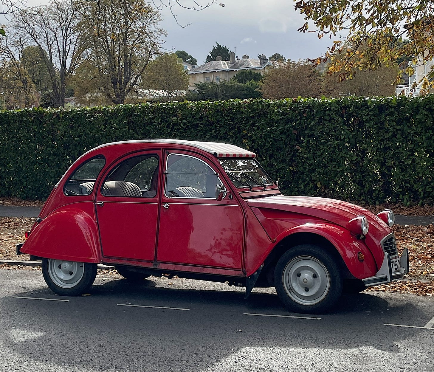 I took a photo of this 2CV on my way to the College a few days ago. It’s the colour that drew me, an earthy red with a little vermilion. Mr D painted our old garden chairs in a F&B paint called Romesco like the tomato sauce, earlier in the month, a bold choice in our small garden.