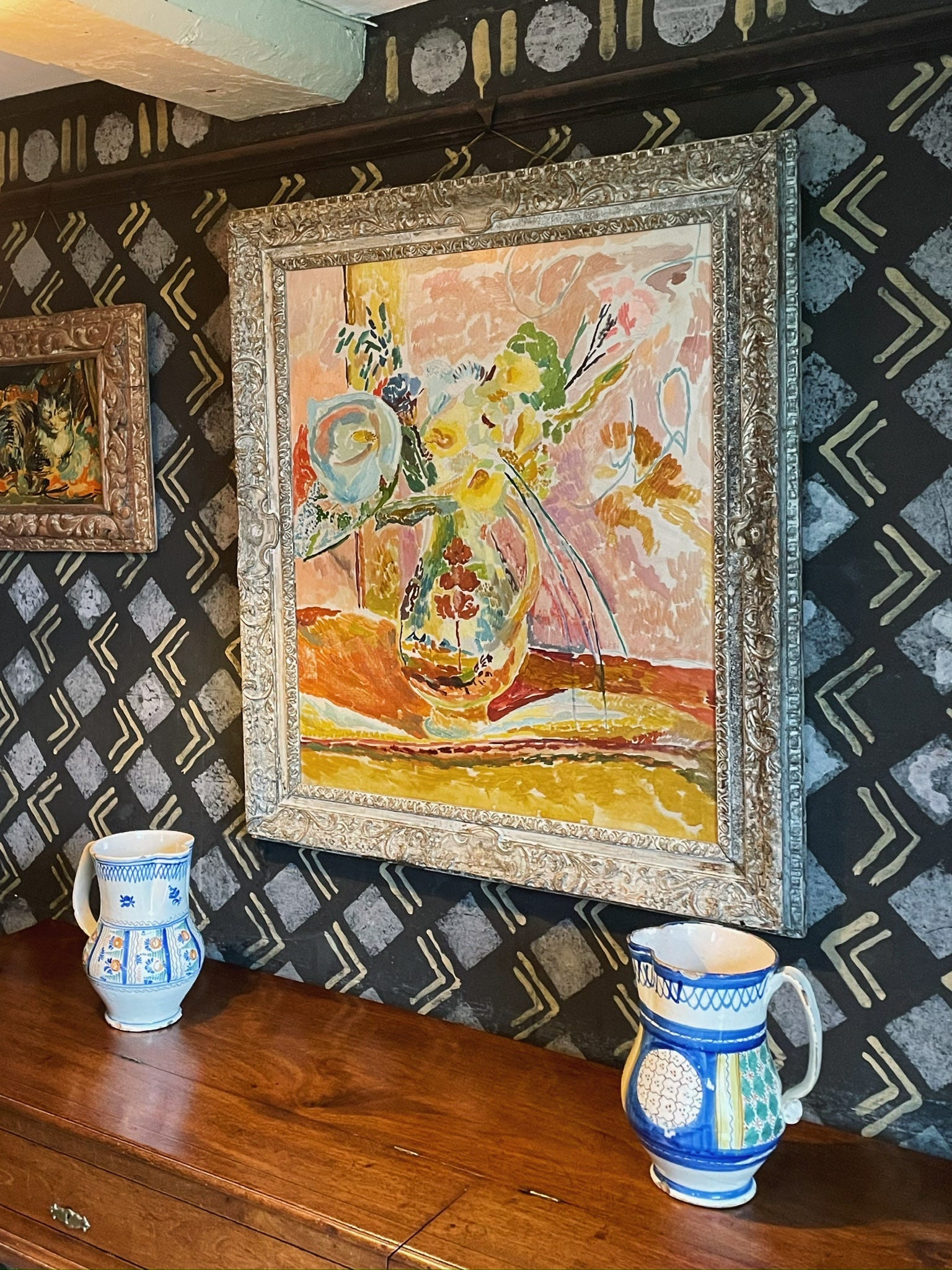 We always like to visit Charleston and Monk’s House if we’re close by, the National Trust volunteers are fun and love to chat about the artists. This time I looked more closely at the framed art and the block printing at Charleston and it was so interesting to see Virginia Woolf’s book collection and her journals which are dotted round Monk’s House. Virginia’s signature often looks like the VW car logo, both were probably inspired by early European manuscripts.