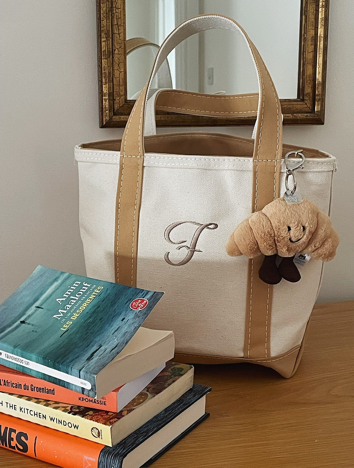 So many interesting recommendations, and I love the bag. Is it from LL Bean? (My daughter, daughter-in-laws and myself all have beach bags in Brittany, canvas and navy straps, with our names on, I love the beige and initial!)